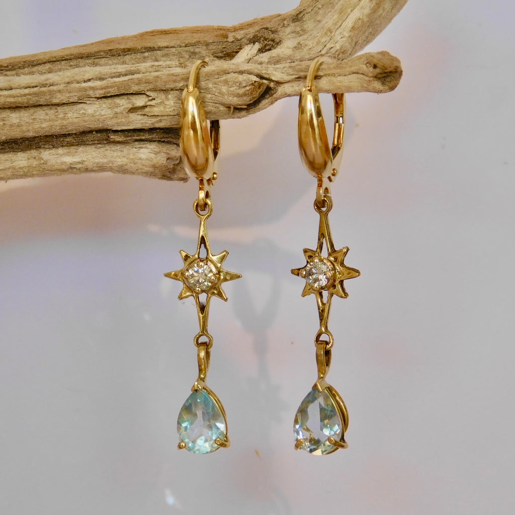 NORTH STAR AND AQUAMARINE DROP EARRINGS
