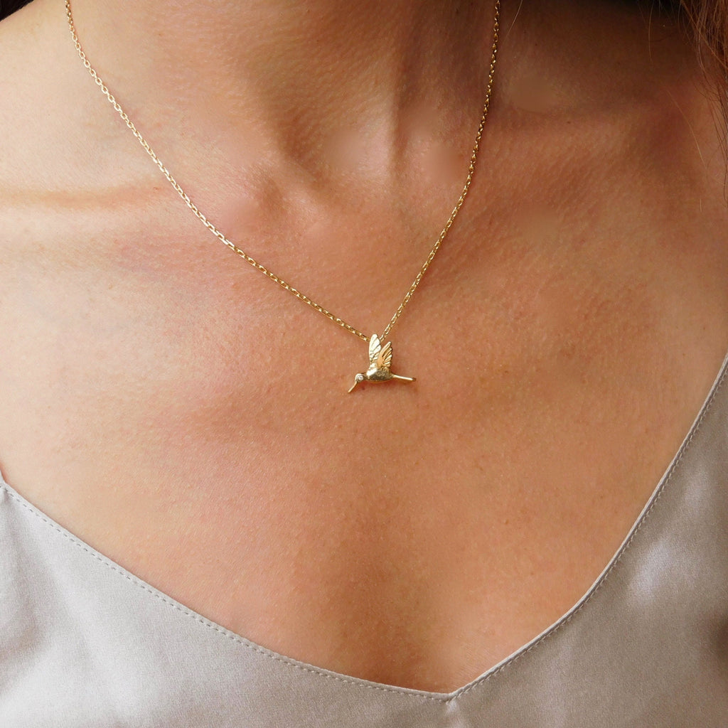 Embrace the elegance of the HUMMINGBIRD Pendant, featuring a stunning design with glistening diamond wings and eye. Crafted from 18k solid gold, this pendant showcases 9 x 0.03ct ethically sourced SI quality brilliant diamonds, adding a radiant sparkle to its delicate hummingbird design. Perfect as a pendant or necklace, it symbolizes beauty and grace, making it a cherished piece for any jewelry collection.