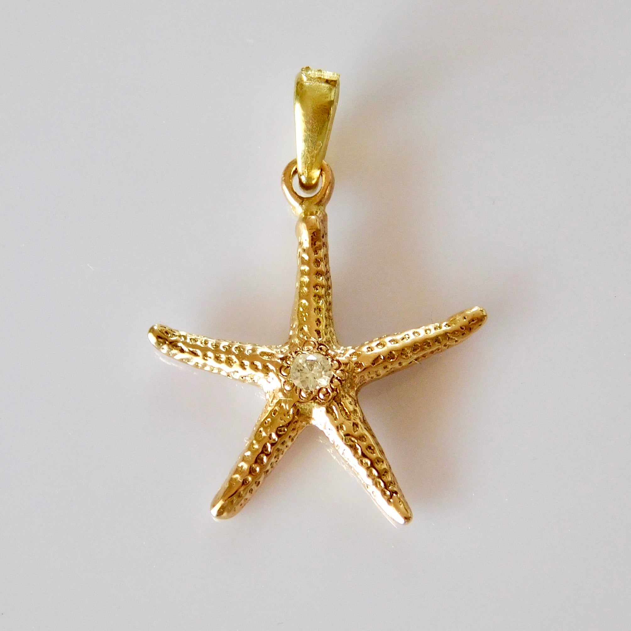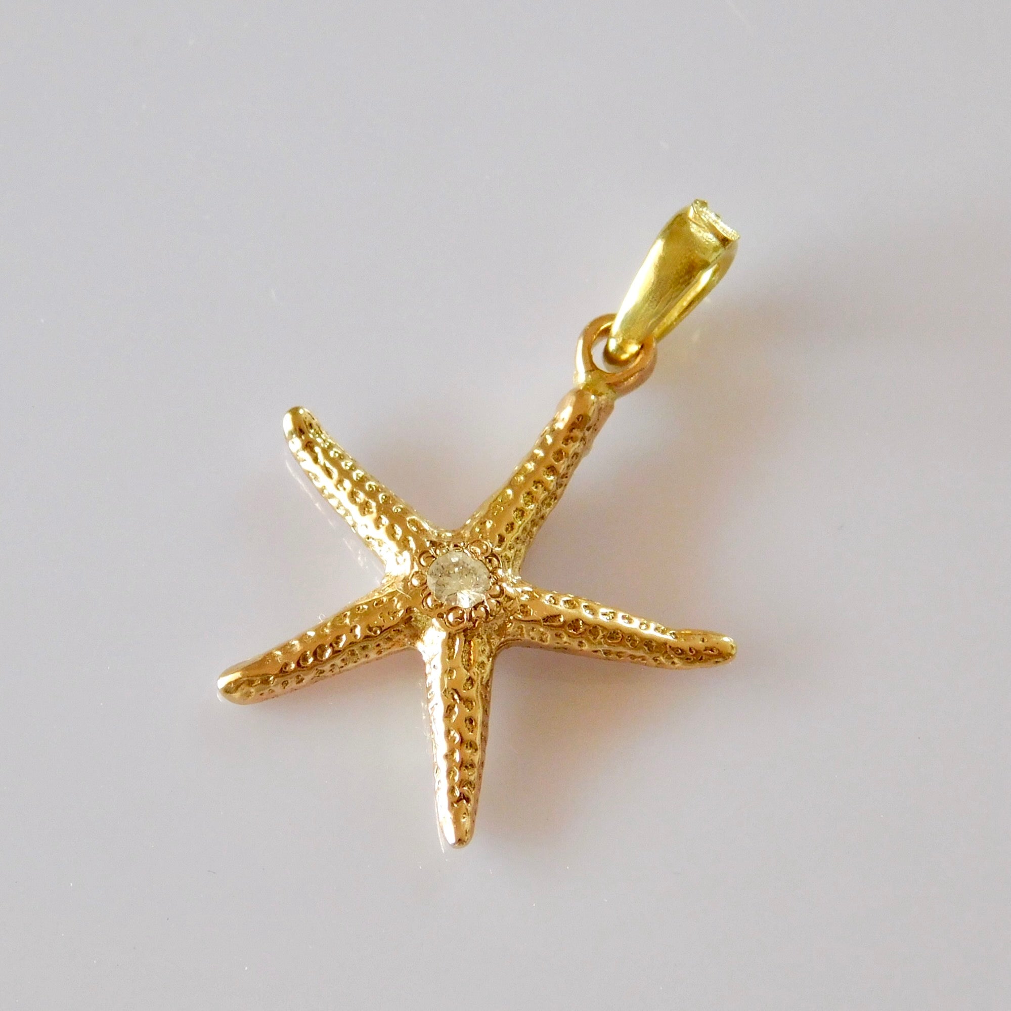 Illuminate your style with the Sea Star Diamond Pendant, crafted in 18k gold and featuring an ethically sourced VS 0.1ct brilliant quality diamond at the center. This exquisite pendant combines the beauty of a sea star design with the elegance of a sparkling diamond, creating a piece that radiates both sophistication and charm. Perfect for adding a touch of luxury to any outfit or as a thoughtful gift for a loved one.